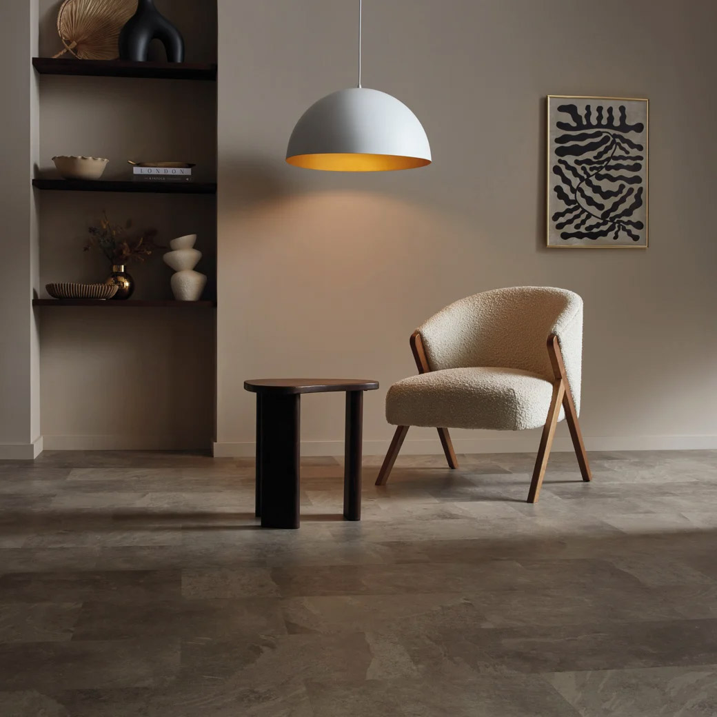 Grey Riven Slate ST16 from our Knight Tile Gluedown collection performs reliably even in moisture-prone environments like kitchens and bathrooms. Designed as part of Karndean’s premium Vinyl Plank flooring range, it combines form and function effortlessly. Crafted by Karndean, Grey Riven Slate ST16 is a standout in the Vinyl Plank flooring market, ideal for stylish and practical interiors.